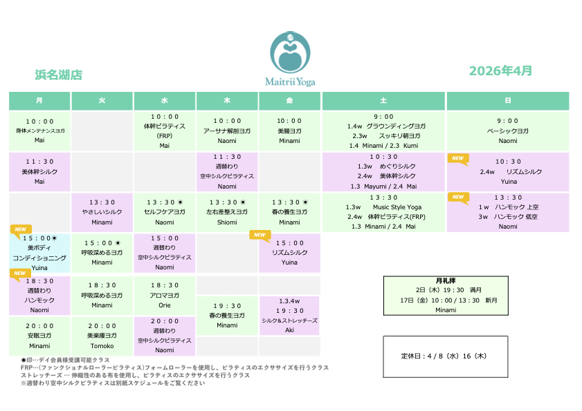 ・ヨガ体験は各スタジオ(浜松中央店・磐田店・浜名湖店)それぞれ1度のみとさせていただきます。
