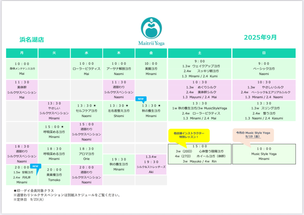 浜名湖店ではヨガ/ピラティス/シルクサスペンションなどのバリエーション豊かなクラスをご用意しております♪