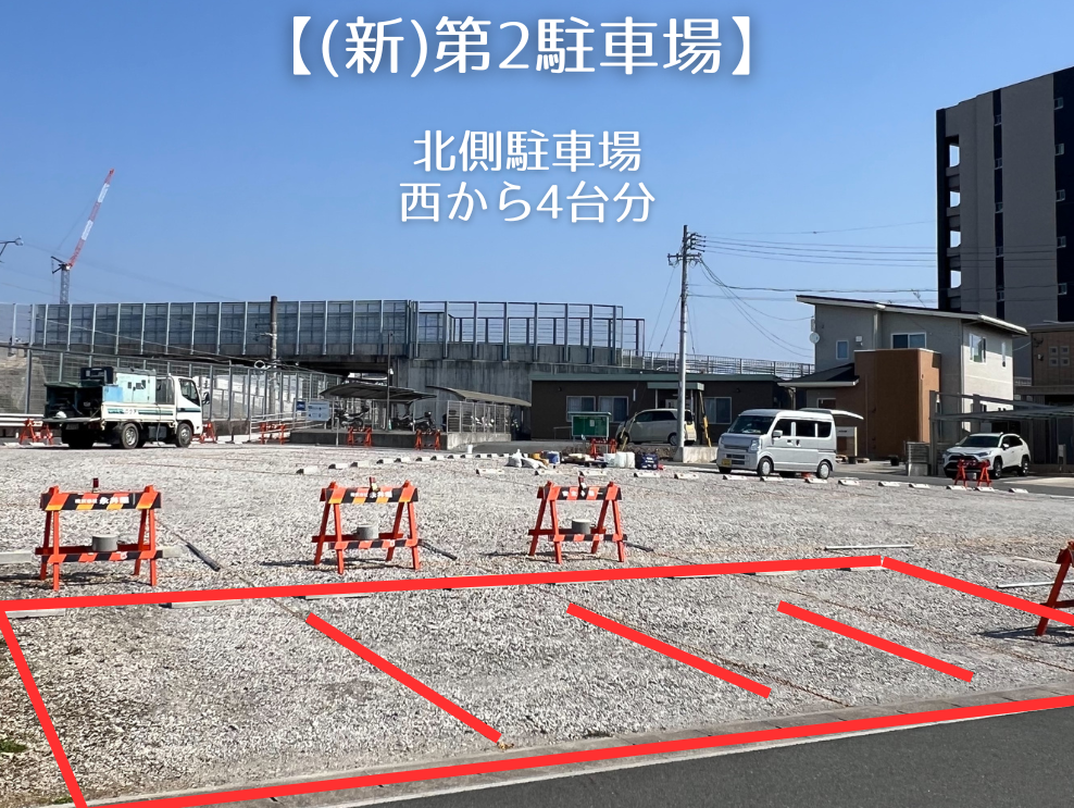 第2駐車場(4台)建物の北の道挟んだ駐車場(スタジオに近い西側から4台、マイトリーヨガの車止め)に駐車できます。
