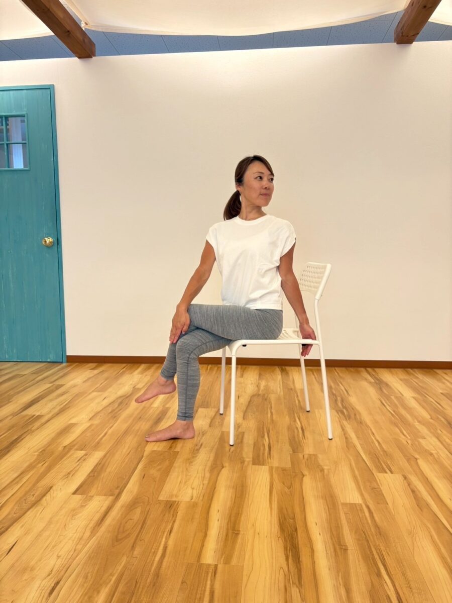 🪑場所を選ばず、ヨガマットも不要、ウェアへのお着替えも不要、身軽に気軽にできるのも魅力一つ。
