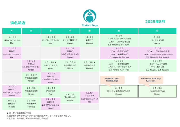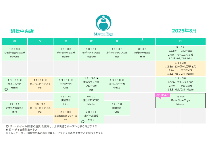 ・ヨガ体験は各スタジオ(浜松中央店・磐田店・浜名湖店)それぞれ1度のみとさせていただきます。