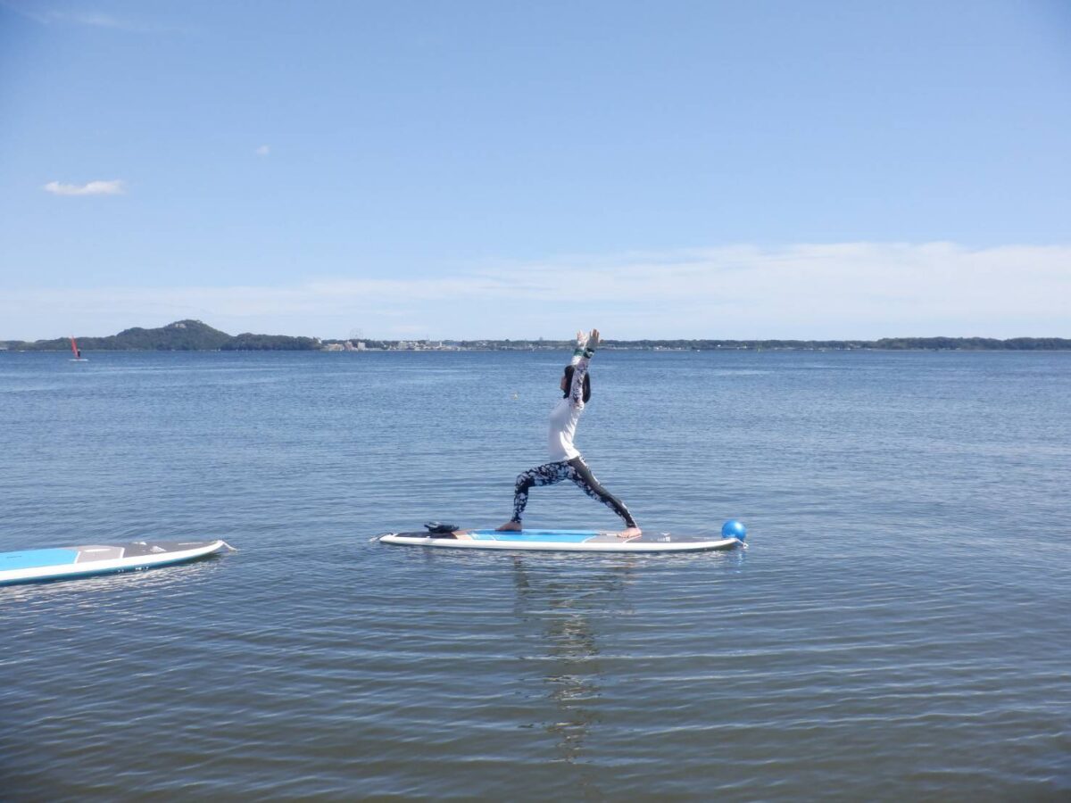 SUPYOGAで浜名湖に抱かれ癒されたあとは、SUP体験で湖上散歩をお楽しみください。